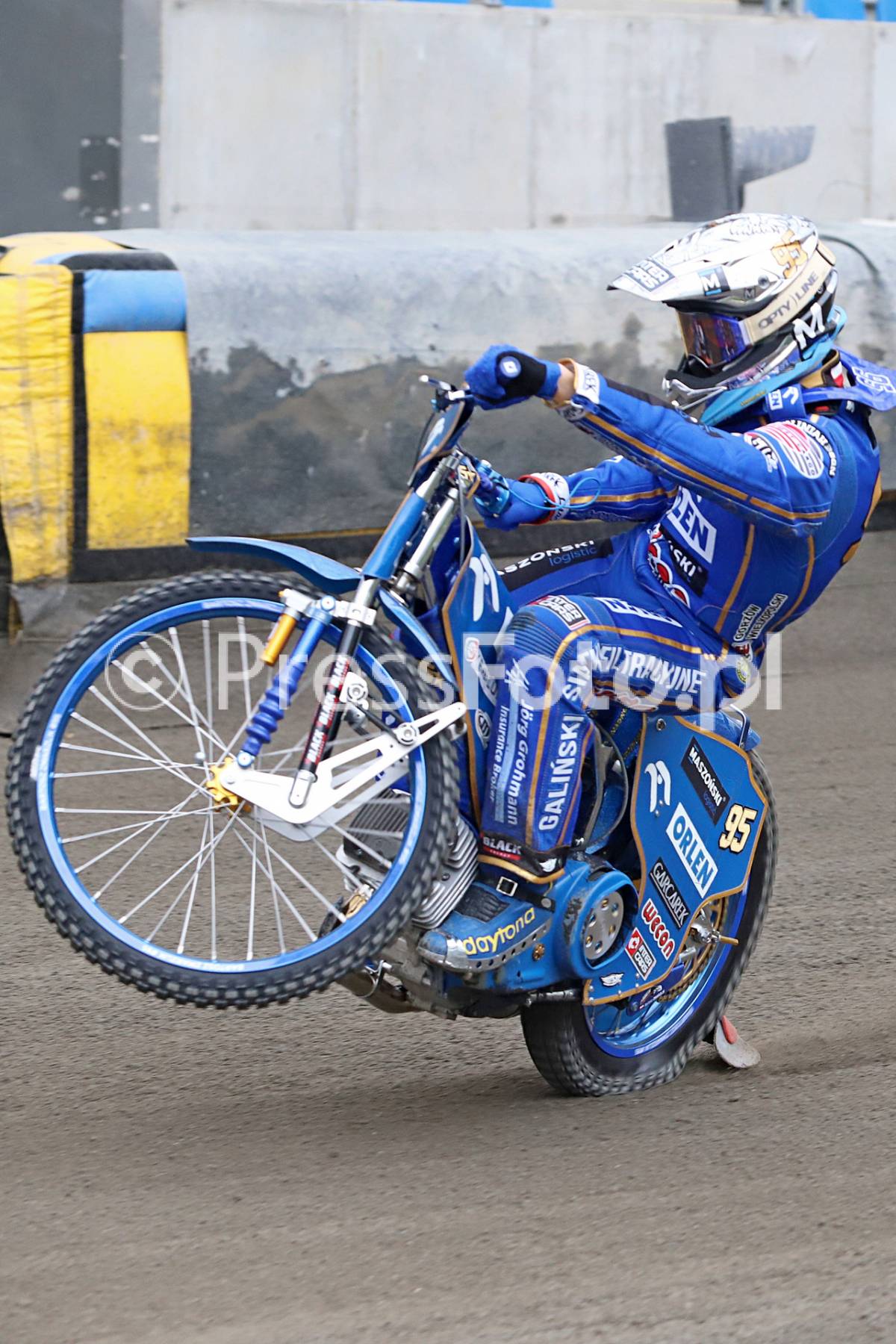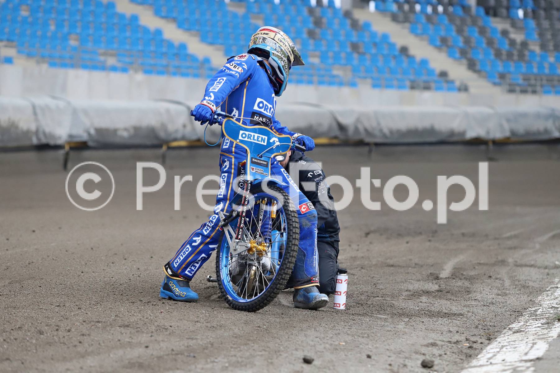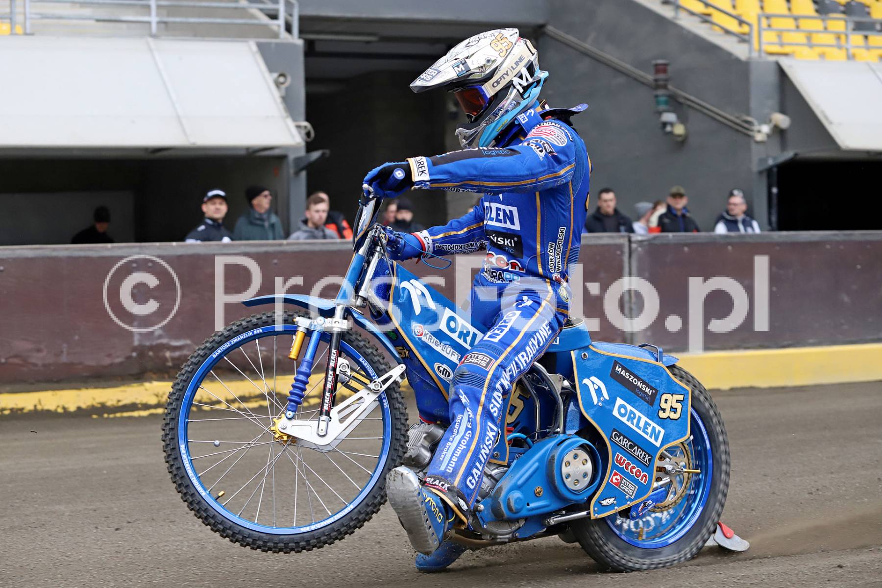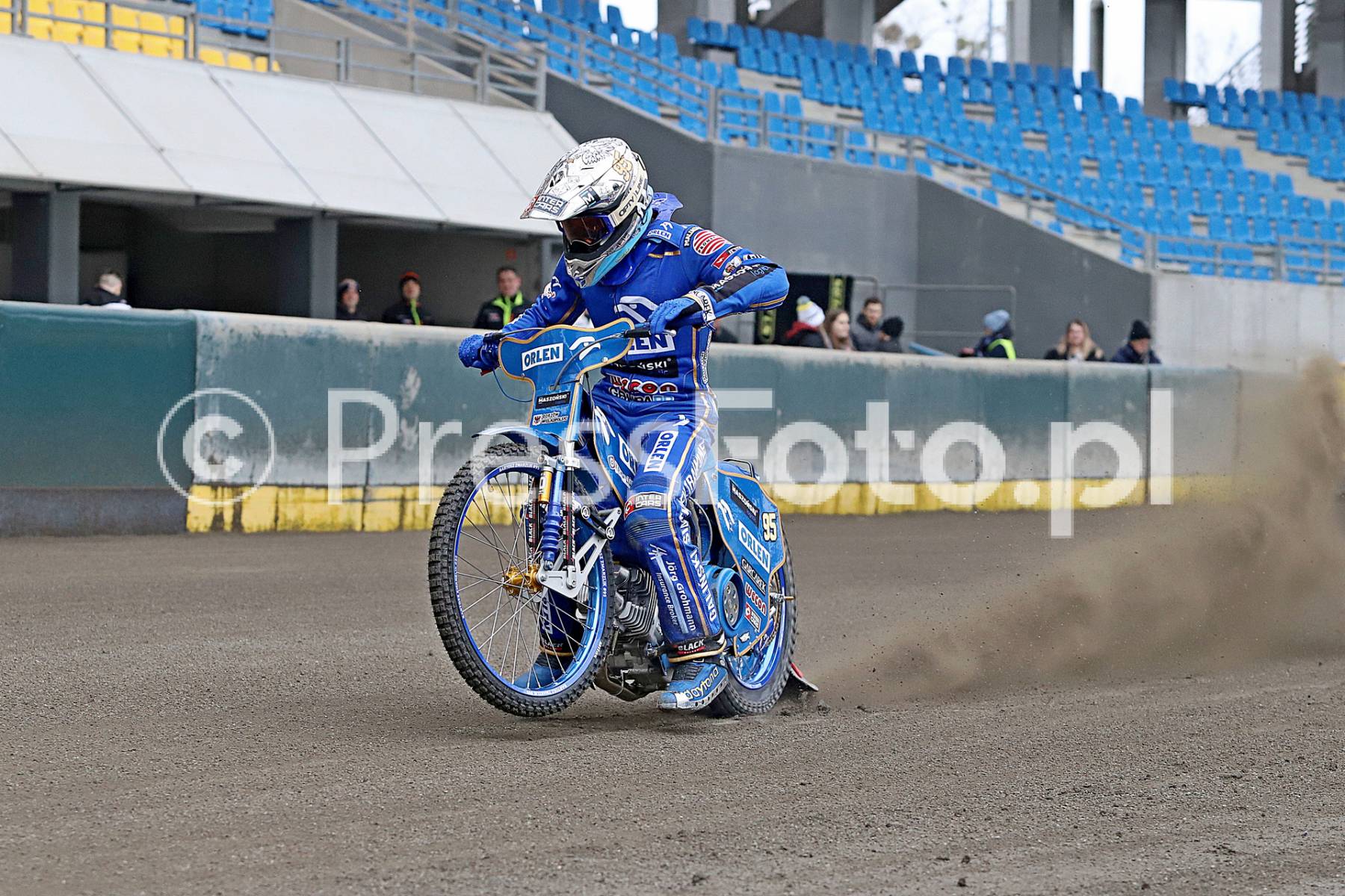 Mistrz Świata Bartosz Zmarzlik podczas treningu na Motoarenie